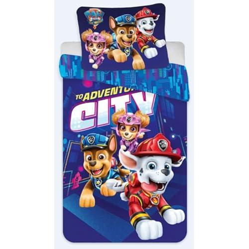 TOP BRANDS Pat Patrol Movie City - Parure da letto in cotone per bambini, copripiumino 140 x 200 cm, federa 65 x 65 cm, colore: blu