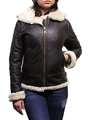 Brandslock Delle donne delle signore con cappuccio Aviator reale montone di pecora volante in pelle cappotto del rivestimento
