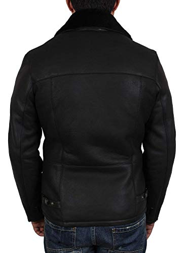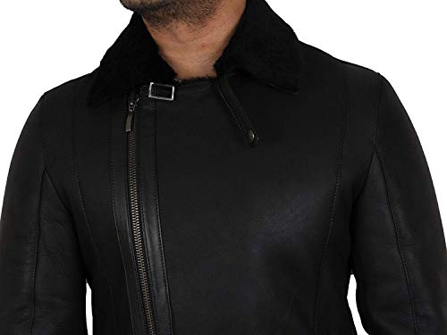 BRANDSLOCK Uomo Inverno Reale Pelle di Pecora Mid Zip Croce Lunghezza Dotato Progettista del Cappotto del Rivestimento (L, Nero)
