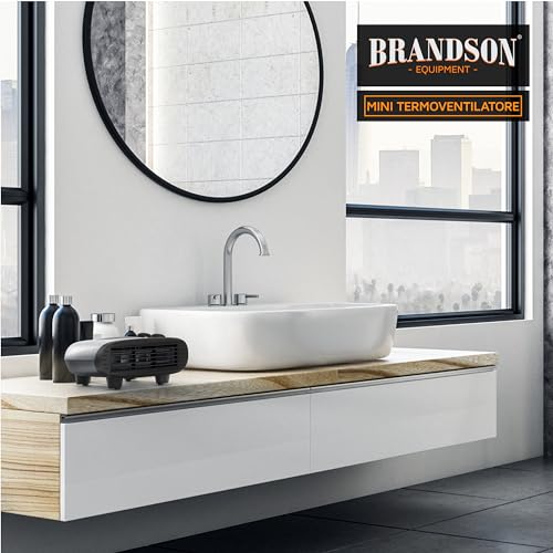 Brandson - Termoventilatore orizzontale - Stufetta da bagno a 3 livelli di potenza - Termostato - LED di stato - 2000W - Il migliore ITALIA Inverno 2023 2024