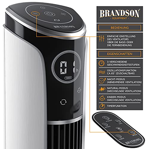 Brandson - Ventilatore a torre con telecomando 108 cm - Ventilatore inclinabile a 10 gradi - Ventola mobile - Ventilatore a piantana con oscillazione - 3 velocità 4 modalità di ventilazione - GS