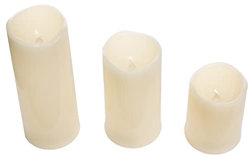 Brandsseller Set di 3 candele a LED, luce bianca calda, tremolante, per esterni, timer da 5 ore, avorio, diametro 7,5 cm, altezza 10, 15 e 20 cm