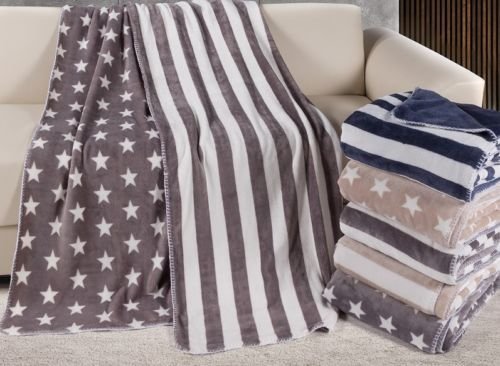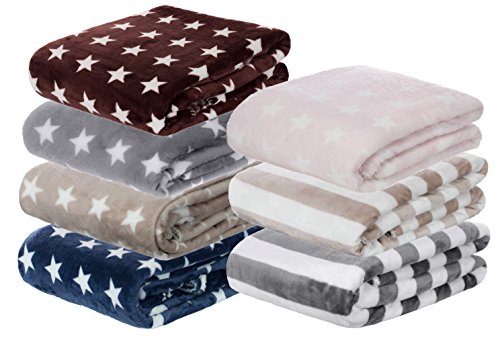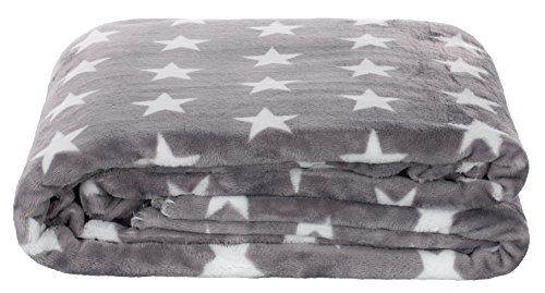 Brandsseller - Coperta morbida in micropile con stelle e strisce, 150 x 200 cm, Poliestere, Grau - Sternenmuster, 150 x 200 cm