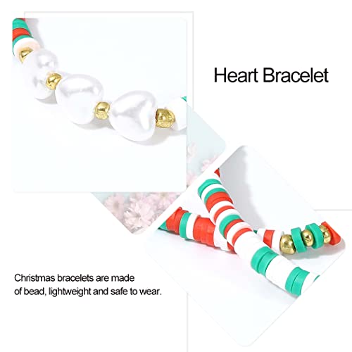 Branets Set di 3 bracciale natalizi da donna con perline colorate a forma di cuore elastico - Regalo di Natale - Regolabili per donne e ragazze