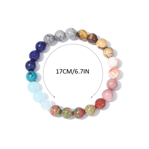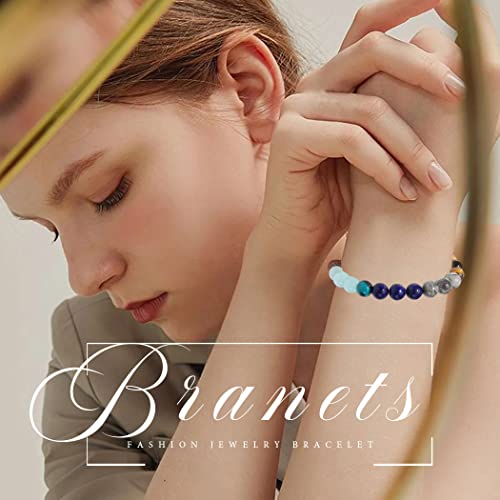 Branets Bracciale con perline - Pietra preziosa naturale da 8 mm - Bracciale regolabile in cristallo per le donne (Pietre Chakra Colorate)