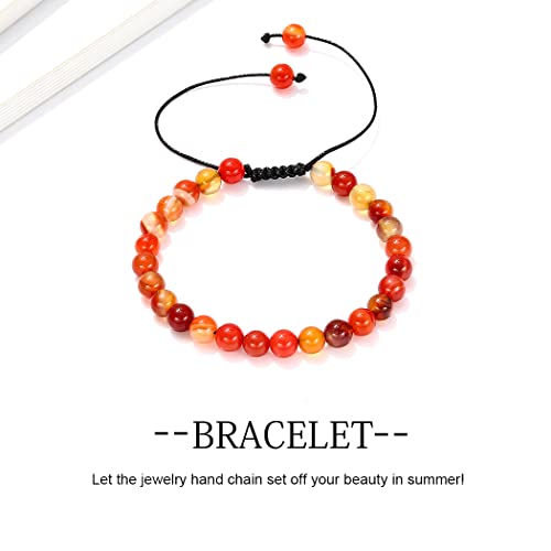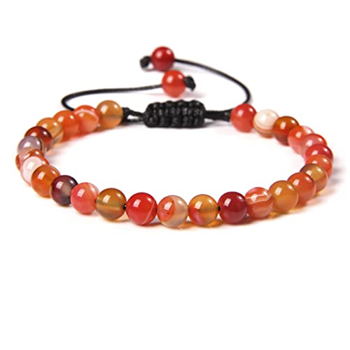 Branets Bracciale in pietra naturale, Bracciale con perline da 6 mm - Bracciale regolabile in cristallo e pietre preziose per donne e ragazze (Agata Striata Rossa)