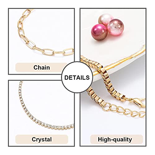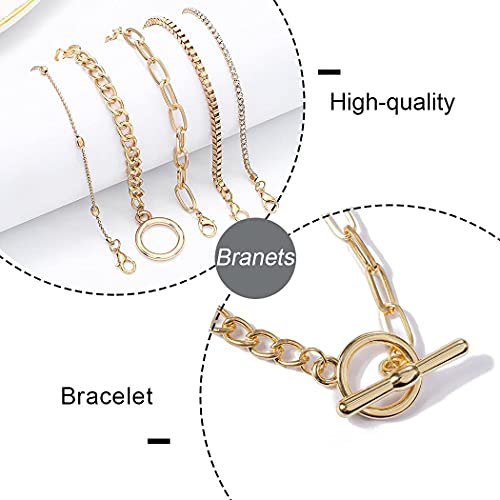 Branets - Set di braccialetti in cristallo a strati con circle, con perline e catena a mano, regolabile, per donne e ragazze (5 pezzi)