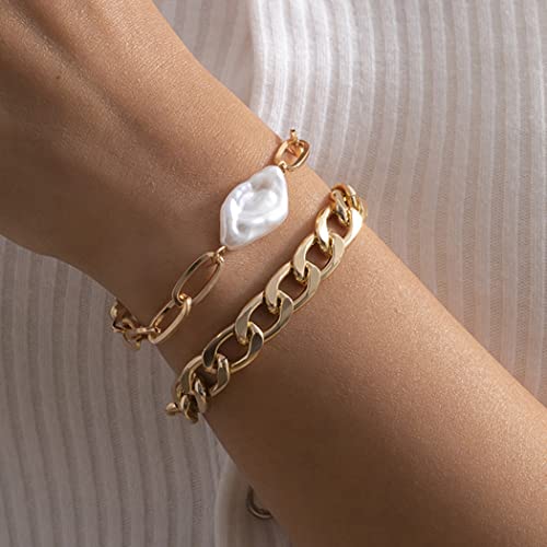 Branets Set di 2 braccialetti con perle boho e perle dorate da donna, regolabile, alla moda e alla moda, con catena punk, gioielli per donne e ragazze