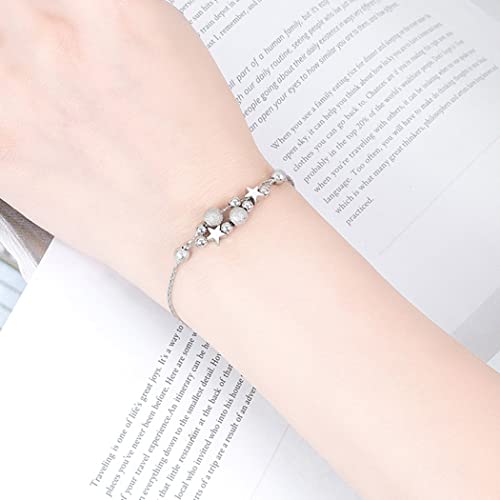 Branets Catena regolabile a mano con bracciale con perline Lucky Star in argento sterling 925 per donne e ragazze