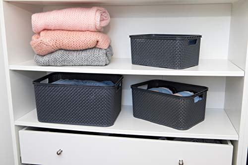 Set di 3 cestini in plastica di alta qualità, stile rattan, taglia S