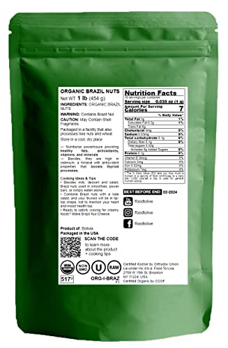 Noci del Brasile Biologici, 1 Libbra - Non OGM, Intero, Crudo, Senza guscio, Non salato, Kosher, Vegan, Keto, Paleo Friendly, Noce brasiliana sfusa, Buona fonte di selenio, Snack Trail Mix