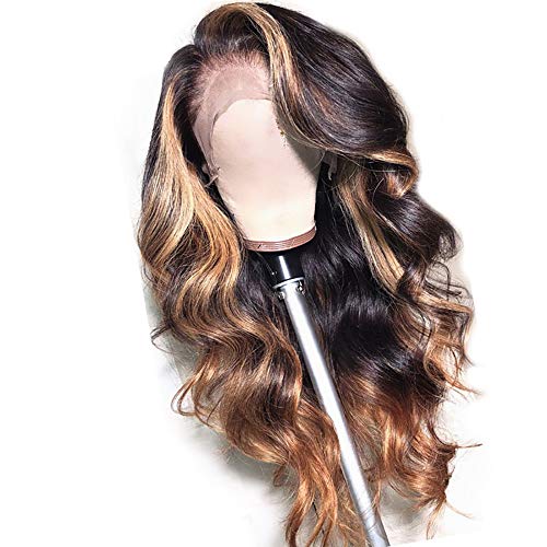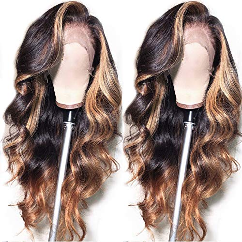 Riya Brasiliano sciolto profondo 13 * 4 pizzo frontale capelli umani parrucche prepizzicate biondo miele Remy ombre colore senza colla parrucca con evidenziare 150% densità 40,6 cm
