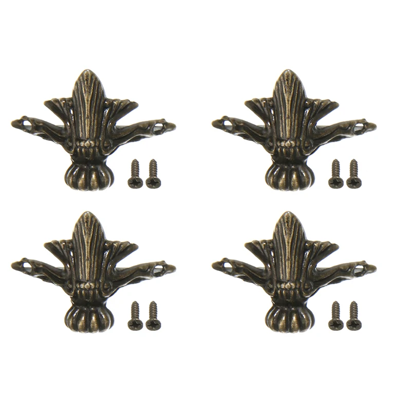 4pcs Brass Leg Corner Protector Antique Jewelry Wood Box Feet Decorative Corners 42 x 30mm For Home Decorations