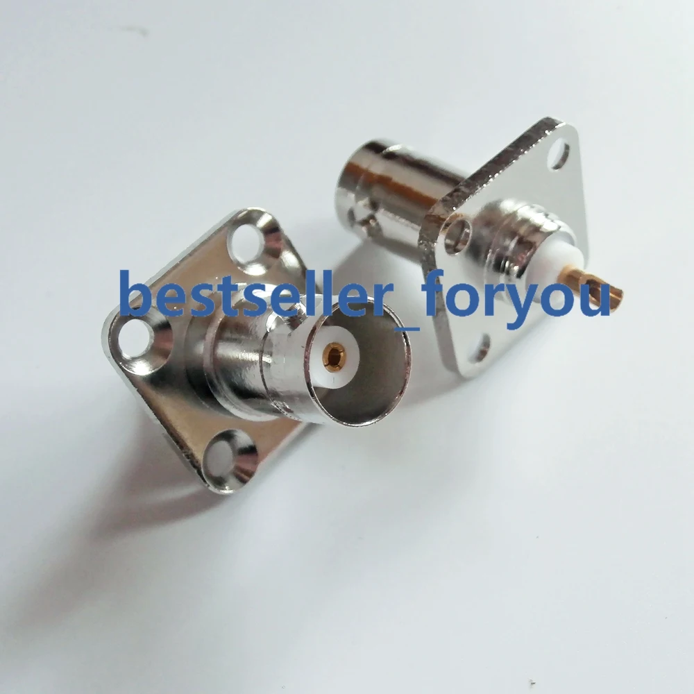 Brass BNC Female Jack With 4 Holes Flange Panel Chassis Mount Coaxial Solder Connector