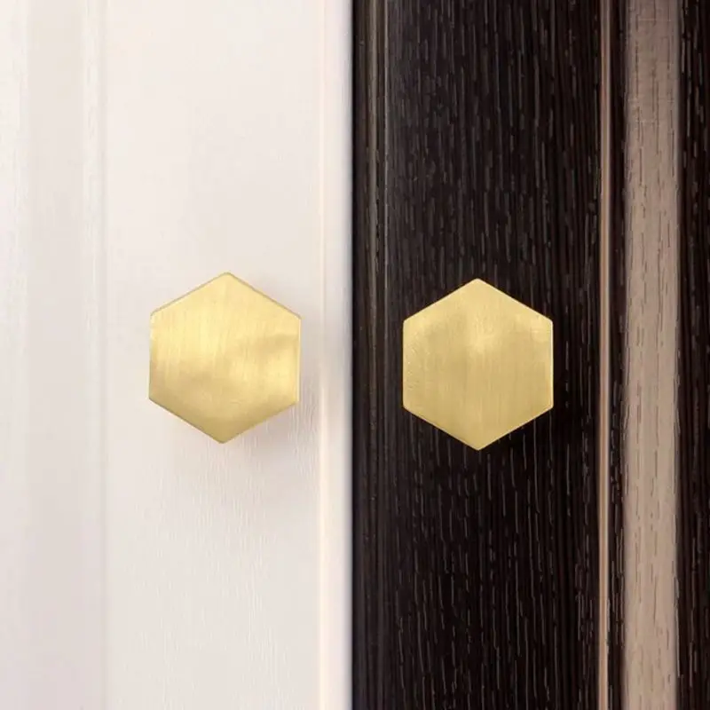 Y1UD Gold Brass Hexagon Knobs Cabinet Door Handle Dresser Drawer Pulls Home Furniture Hardware