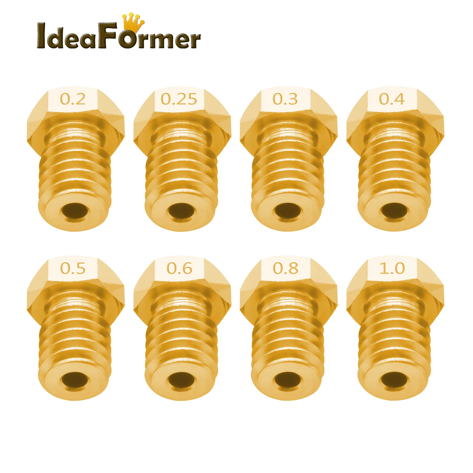 5Pcs V6 Brass Nozzle M6 Thread 0.2/0.25/0.3/04/0.5/0.6/0.8/1.0 mm Bore Diameter For 1.75mm or 3.0mm filament 3D Printer Parts.