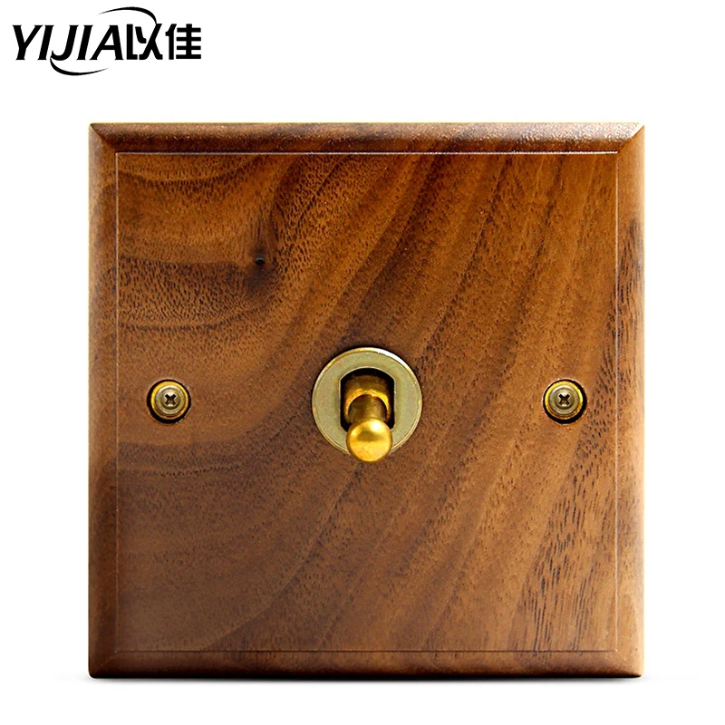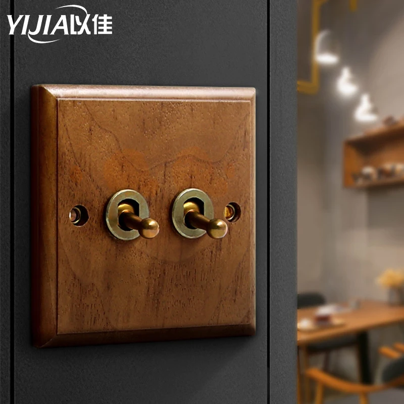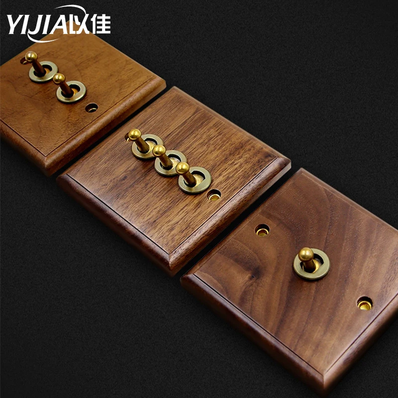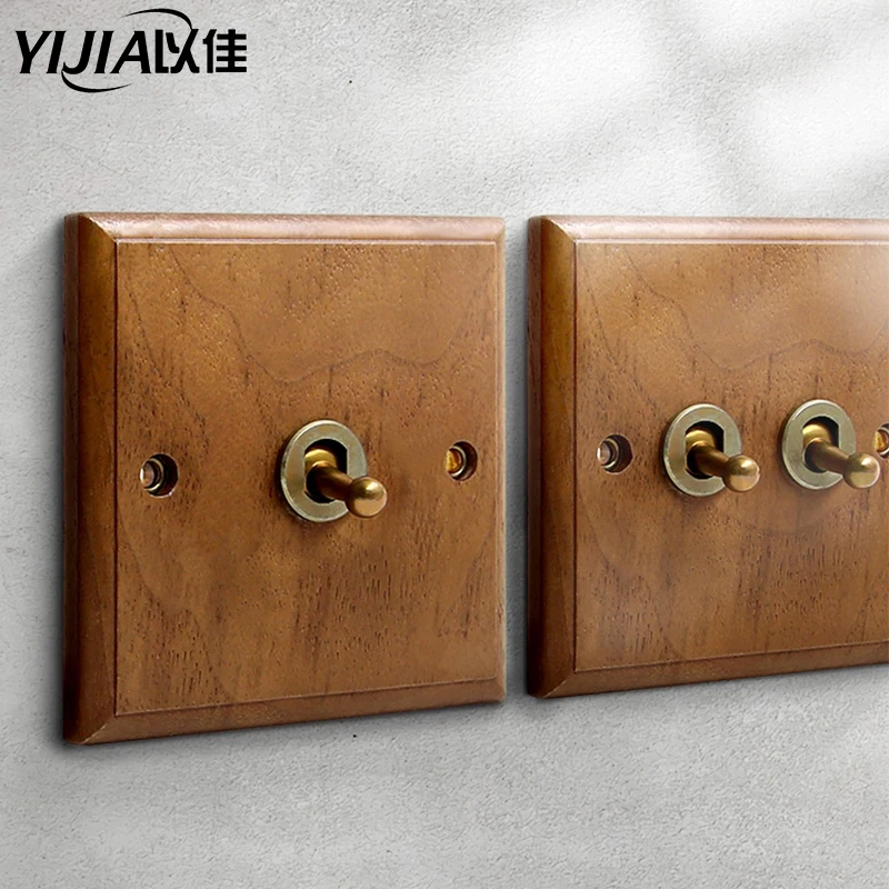 Brass switch,220V 10A vintage toggle wallpad switch wood panel 1/2/3/4Gang 2Way brass wrench Switch Retro style LightSwitch 86mm