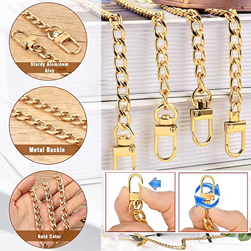 Brateuanoii 4 Pezzi Catena Per Borsa, Catena Borse In Metallo, Catena Ricambio Borsa, Per Borsa a Tracolla, Borsa, 40/60/100/120cm, Oro Con Fibbia Girevole