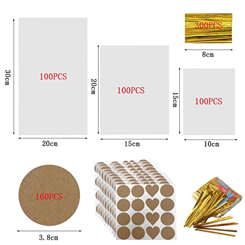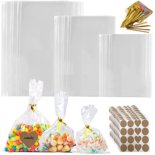 Quantità e dimensioni: contiene 300 sacchetti di cellophane, 300 nastri colorati e 160 adesivi rotondi. Dimensioni dei sacchetti di cellophane: 20 x 30 cm, 15 x 20 cm, 10 x 15 cm, 100 ciascuno. Il numero di sacchetti di cellophane può soddisfare le esigenze della vita quotidiana.