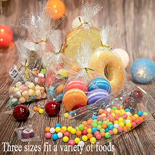 Brateuanoii 300 Pezzi Sacchetti Trasparenti Per Caramelle, Sacchetti Trasparenti Per Confezioni, Bustine Trasparenti, Tre Dimensioni, Forte, Per Pane, Caramelle, Biscotti, Confezioni Regalo