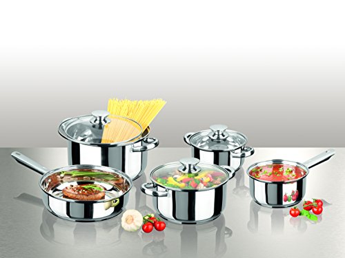 Bratmaxx 00100 in Acciaio Inox per Piano Set pentole con Coperchio in Vetro, Argento, 24 x 24 x 7 cm, 8 unità