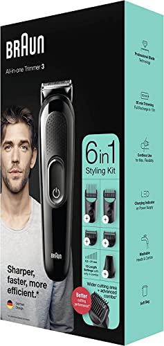 Braun Kit 6 in 1 All-In-One Series 3, kit per la toelettatura maschile con regolabarba, tagliacapelli e tagliacapelli di precisione con lame affilate a vita, 5 accessori, regali per uomo, spina UK a 2