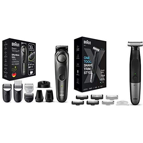Braun Beard Trimmer 7 Regolabarba Tagliacapelli Uomo, Rifinitore Barba, 39 Impostazioni di Lunghezza & Series XT5, Rasoio Elettrico Barba Con Rifinitore per Depilazione Uomo, Custodia da Viaggio