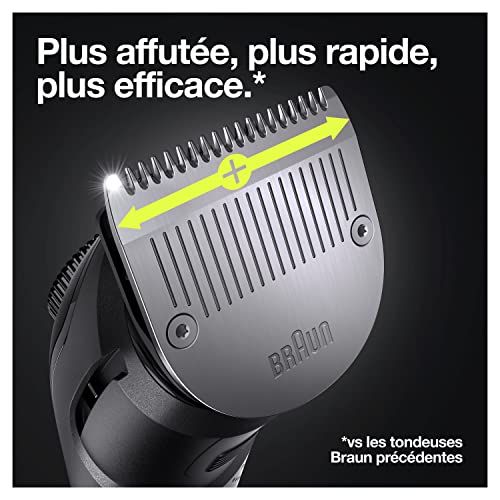 Prodotto 1: Affilato. Veloce. Efficiente: Il regolabarba 7 di Braun è realizzato con un'area di taglio ampia e cattura e taglia i peli a ogni passata
