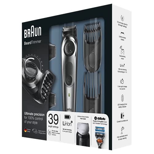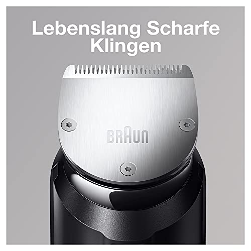 Braun BT7040 Regolabarba Uomo Elettrico, Tagliacapelli, Rifinitore di Precisione e Mini Rasoio a Lamina, Lame Affilate in Metallo, Rasoio Gillette Fusion5 ProGlide, Base di Ricarica, Nero/Grigio