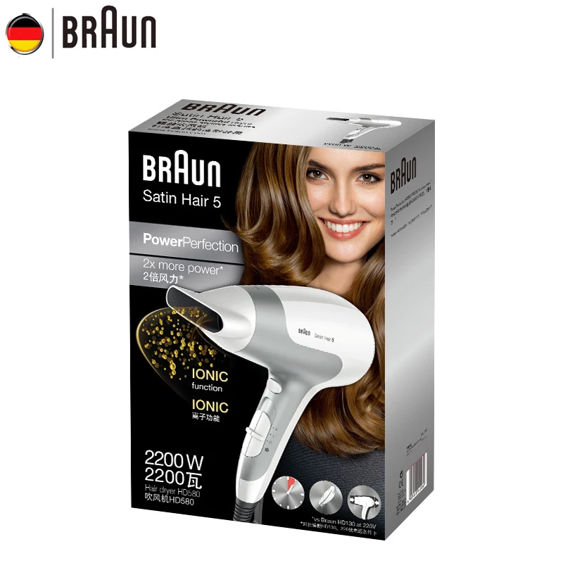 Braun Hair Dryer Unfoldable Handle Electric Anion Ultra Quiet Fast Drying Sleek and Stylish Design Hair Protector HD580