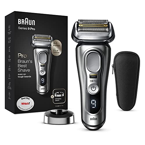 Braun Rasoio elettrico Series 9 Pro con testina 4+1, rasoio elettrico da uomo con trimmer ProLift, supporto di ricarica e custodia da viaggio, tecnologia Sonic, spina UK a 2 pin, 9417s, argento,