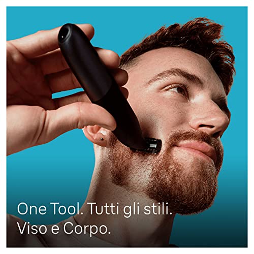 Rade, rifinisce e regola con un solo strumento: rasoio elettrico barba e rasoio elettrico corpo uomo. Per viso (pettini da 1, 2, 3, 5 mm) e corpo (pettine per le aree sensibili e da 3 mm)