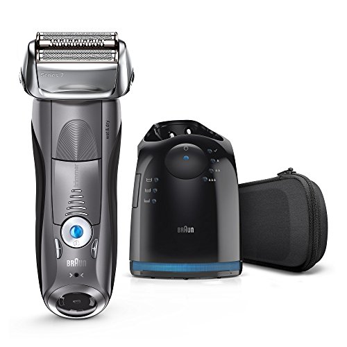 Braun Series 7 7865cc Rasoio Elettrico Uomo a Lamina, Wet&Dry, Ricaricabile e Senza Fili, con Rifinitore di Precisione Integrato, Stazione di Pulizia Clean&Charge e Custodia da Viaggio, Grigio