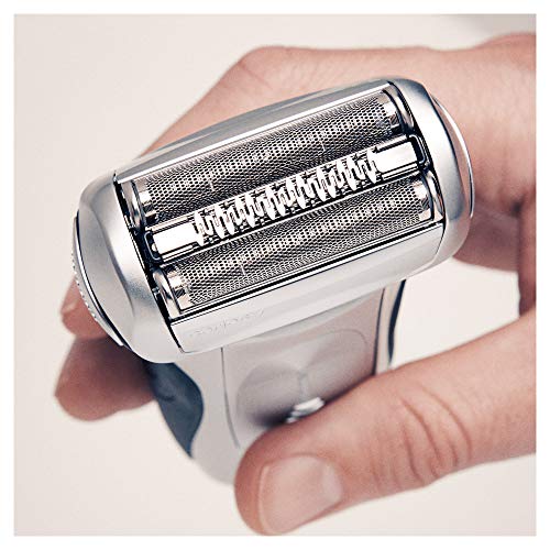 Braun Series 7 7898cc Rasoio Elettrico Uomo a Lamina Wet&Dry, Ricaricabile e Senza Fili con Rifinitore di Precisione Integrato, Stazione di Pulizia Clean&Charge e Custodia da Viaggio Premium, Argento