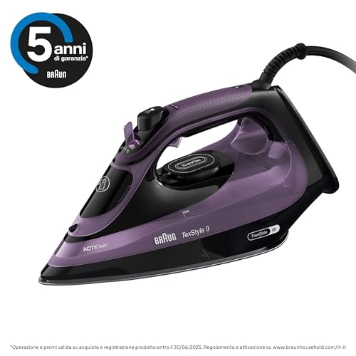 Braun TexStyle 9 SI 9661 VI, Ferro da Stiro a Vapore con Tecnologia FreeGlide 3D, Ferro Verticale, Funzione Anti-Gocciolamento, Serbatoio da 330ml, 260 g/min, 3200W, Viola