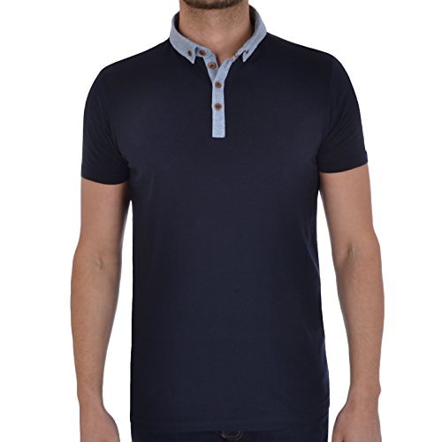 Polo uomo in jersey di cotone con dettaglio chambray