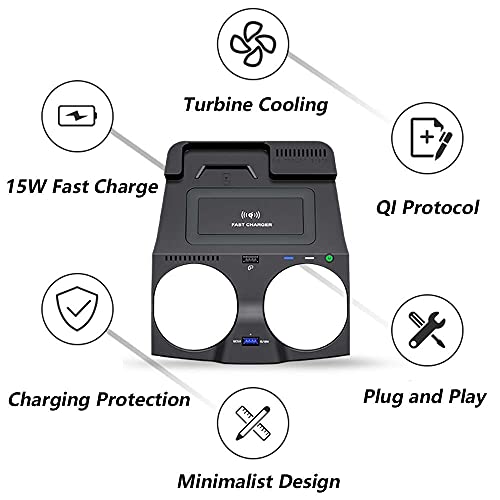 Braveking1 Caricatore Wireless Auto Compatibile con 5 Series G30 G31 6 Series GT 2018 2019 2020 Pannello Accessori Console Centrale, 15W Rapida Ricarica Telefono Pad con QC 3.0 USB per iPhone Samsung