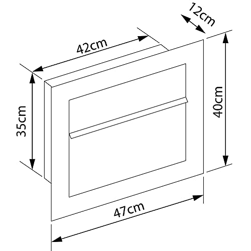 Dimensioni della cassetta delle lettere: larghezza 47 cm, altezza 42 cm, profondità 12 cm, fessura per inserimento 36 cm, larghezza 3,5 cm