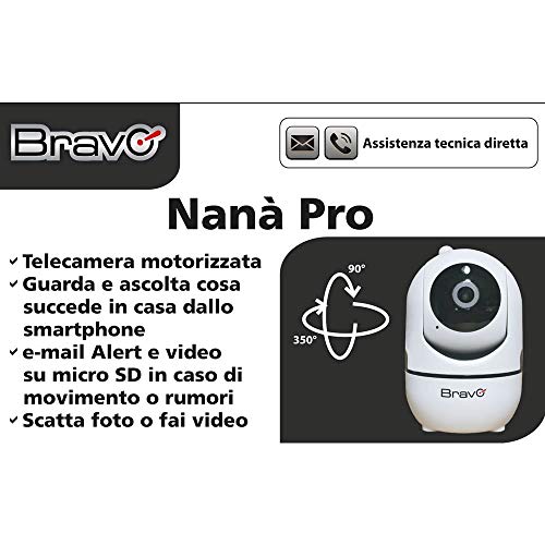 TELECAMERA WIRELESS NANA PRO MOTORIZZATA INTERNO CARATTERISTICHE TECNICHE �� ASSISTENZA DIRETTA PER L'INSTALLAZIONE �� Wi-Fi Network Camera adatto solo per ambienti interni �� Consente il monitoraggio di cosa succede dentro casa sorgente audio a due v