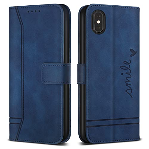 Bravoday Cover per iPhone X/iPhone XS, Flip Custodia in Pelle PU Portafoglio Custodia per iPhone X/iPhone XS, con Slot per Schede, Blu