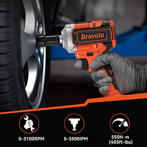 Bravolu Avvitatore ad Impulsi, 21V Brushless 550Nm Avvitatori a Massa Battente 3500 IPM, 4,0Ah Batteria, Mandrino 13mm (1/2"), 4 x Chiavi A Bussola
