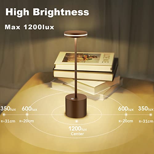 Bravzurg Lampada da Tavolo Senza Fili Ricaricabile, 5000mAh Lampada da Comodino 2 Pezzi a LED, Luce a USB Batteria Dimmerabile, 3 Modalità di Colore, per Scrivania/Esterno/Tavola/Ristorante/Comodino