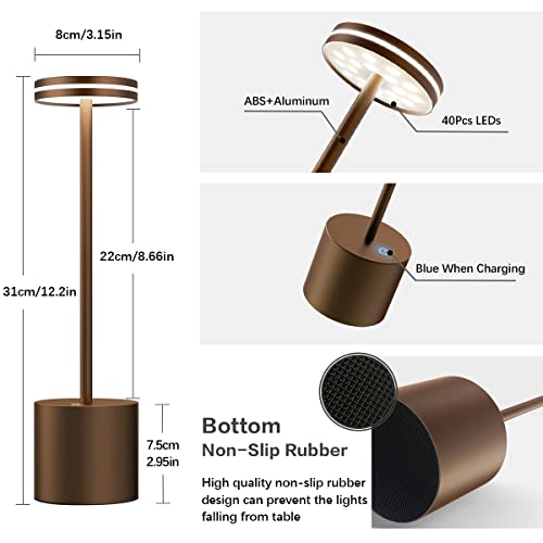【Minimalismo】La lampada da tavolo LED ricaricabile è realizzata in alluminio metallico, mantenendo la lucentezza nel tempo. In particolare, l'illuminazione laterale può creare un'atmosfera confortevole e affascinante. La lampada senza fili può essere posizionata ovunque, comodino, scrivania, ristorante, esterno.