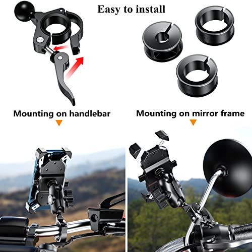 ▶ Il supporto a sfera del manubrio utilizza un inserto in gomma e un bullone di bloccaggio per evitare l'allentamento in caso di vibrazioni elevate per il montaggio su manubri di moto o bici e telai degli specchietti retrovisori, nonché altre guide rotonde entro le dimensioni indicate.