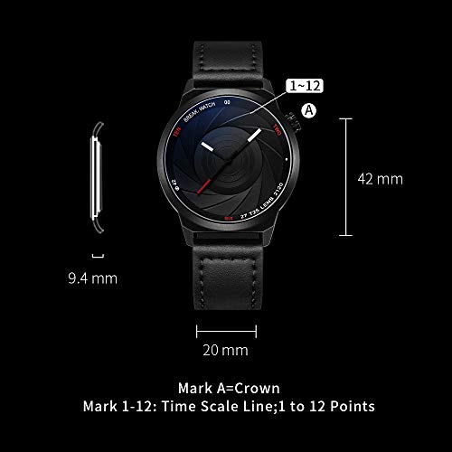 Break Orologio sportivo unisex, del design semplice, sportivo e stiloso, cinturino in pelle nero, al quarzo, impermeabile, parte della Creative Fashion Photographer Series, idea regalo