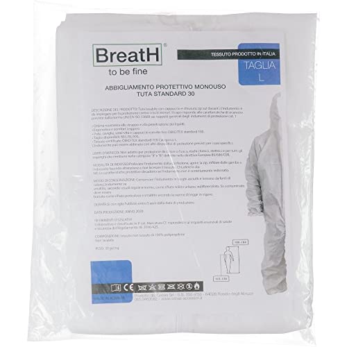 BreatH Tuta protettiva MONOUSO in polipropilene - Certificata CE - 30gr/mq - Confezione 35pz (L)
