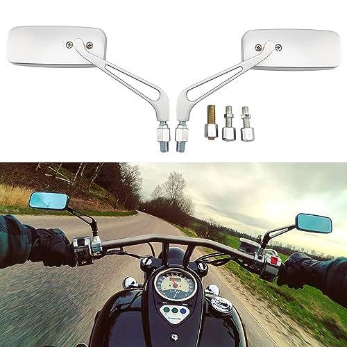 BREDUXSER 8mm 10mm Motociclo Rettangolo Specchietto Retrovisore,Specchietti Laterali moto Compatibile con Street Bikes Sport Bikes Bobber Chopper (Argento)