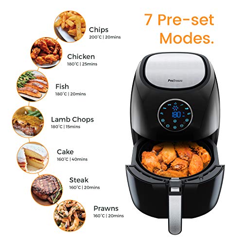 Pro Breeze Friggitrice ad Aria XL-3.2L -Senza Olio ad Aria Calda-Display Touch e 7 Programmi Pre-Impostati-Controllo della Temperatura e del Timer-1400W-Senza BPA