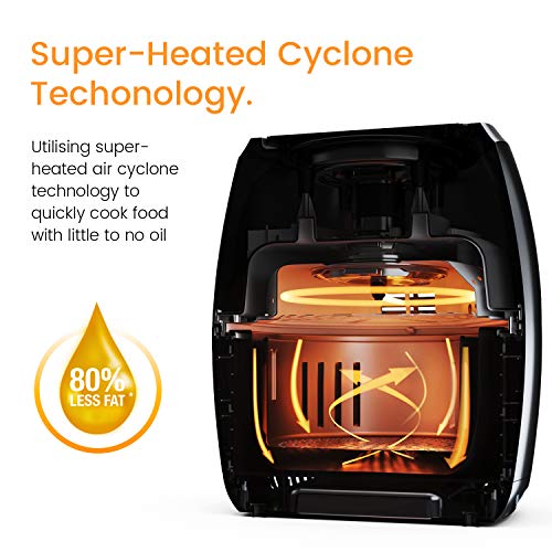 CUCINARE IN MODO SALUTARE E GUSTOSO: Grazie alla sua speciale tecnologia a circolazione avanzata di aria calda ad alta velocità questa friggitrice ad aria ti permetterà di friggere, grigliare, arrostire e cuocere al forno senza l'utilizzo di olio, riducendo fino all'80% di grassi ma mantenendo un sapore eccellente, croccante all' esterno e tenero all' interno.