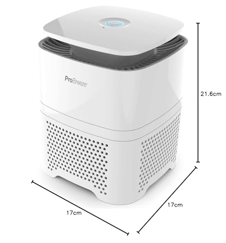 Pro Breeze Purificatore D'Aria 4 in 1 con Pre Filtro, Filtro True HEPA, purificatore aria Carboni Attivi e ionizzatore. Per Casa e Ufficio, Per Allergie e Polvere. Aree medio-piccole(CADR 42m³/h)